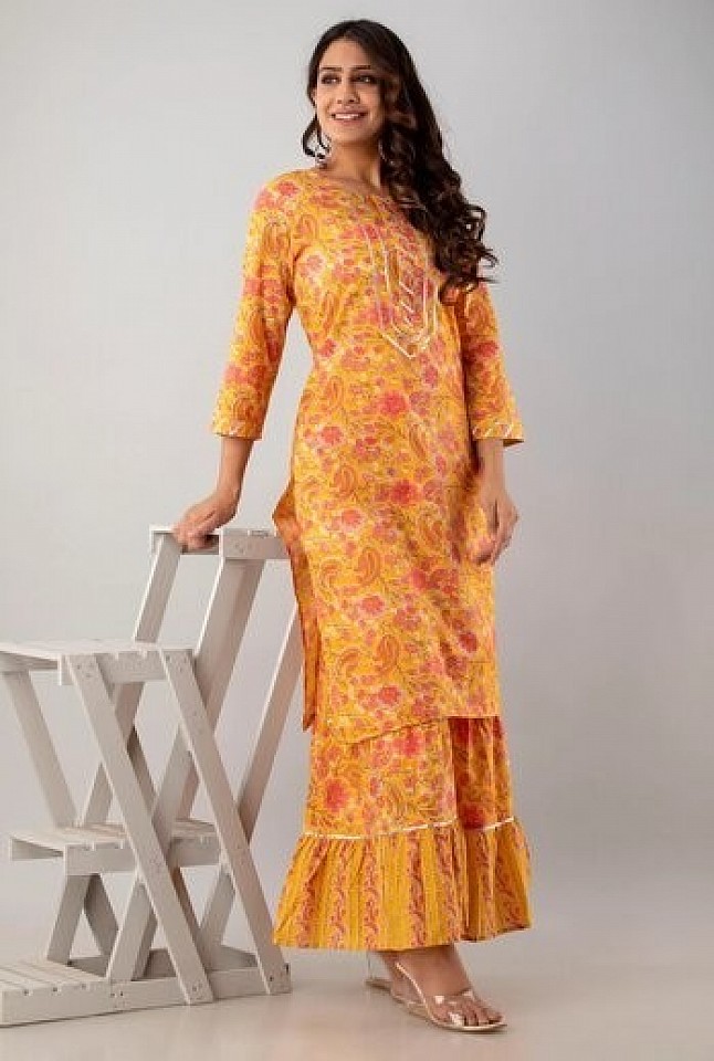 - Pair cotton kurti with palazzo sets with juttis or sandals for a classic look